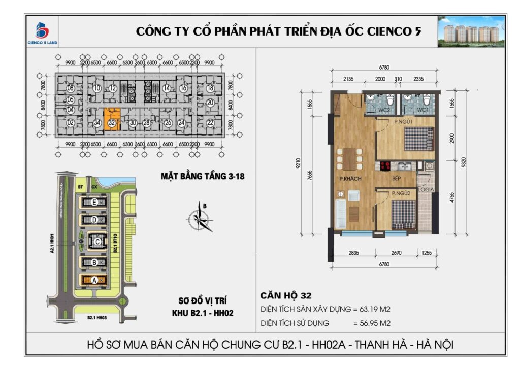 Công năng: 2 phòng ngủ, 2 vệ sinh.